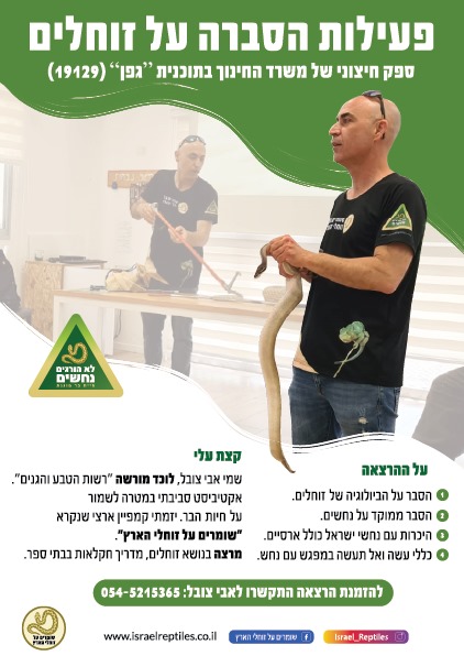 הרצאות ופעילויות הסברה על זוחלי ישראל: הופכים פחד לסקרנות